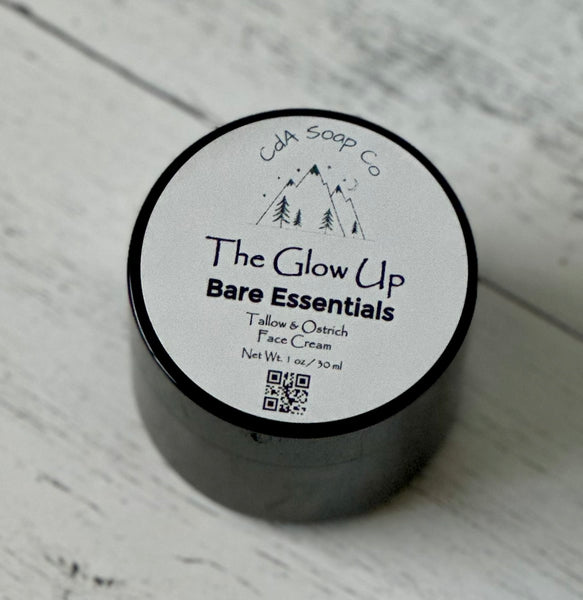 • Glow Up Nourishing Moisturizer (choose your scent) Handcrafted with grass-fed tallow, ostrich oil, camellia oil, carrot seed oil and botanical actives, this deeply hydrating moisturizer leaves skin soft and luminous. Available in multiple scent profiles—from floral and earthy to bright citrus or unscented.
