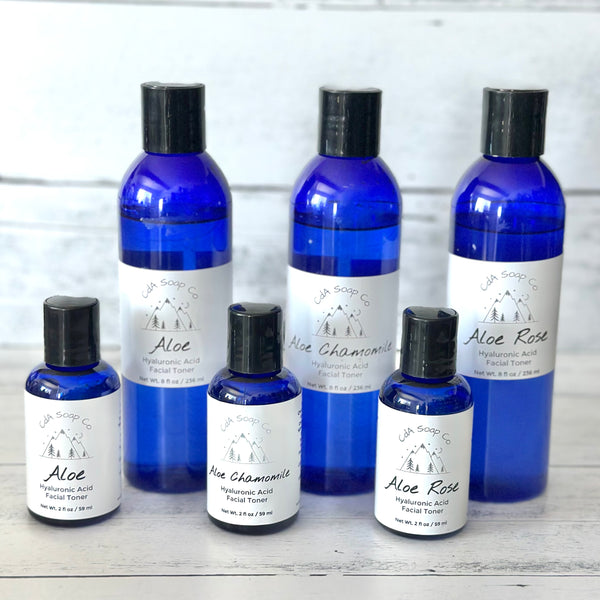 • Hyaluronic Aloe Toner (choose your variant / size) A refreshing, alcohol-free toner that calms and hydrates with organic aloe, rose or chamomile hydrosols, hyaluronic acid, and panthenol. Preps skin to absorb serums and moisturizers more effectively while supporting barrier health.