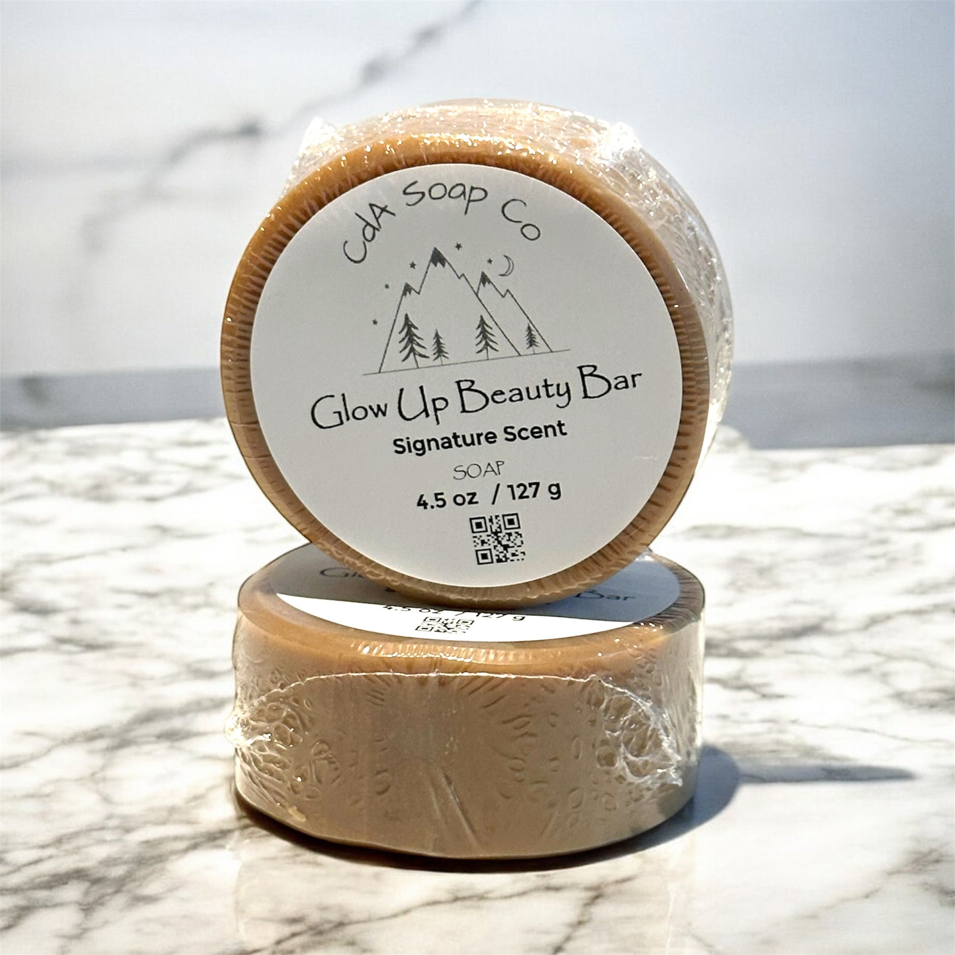 Meet the Glow Up Beauty Bar! A rich, creamy, cold‑process facial and body bar crafted with ancestral fats, nourishing botanicals, and our signature essential oil blend that feels like a luxury spa ritual.