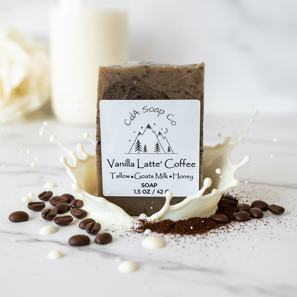 This bar is full of goodness for your sensitive skin made with Saponified Grass fed beef tallow, Coconut Oil, Castor Oil and Olive Oil and a dash of Sodium lactate (salt water), Organic ground coffee with Vanilla Oleoresin oil and Local organic honey from Hamilton Hives in CdA, Idaho